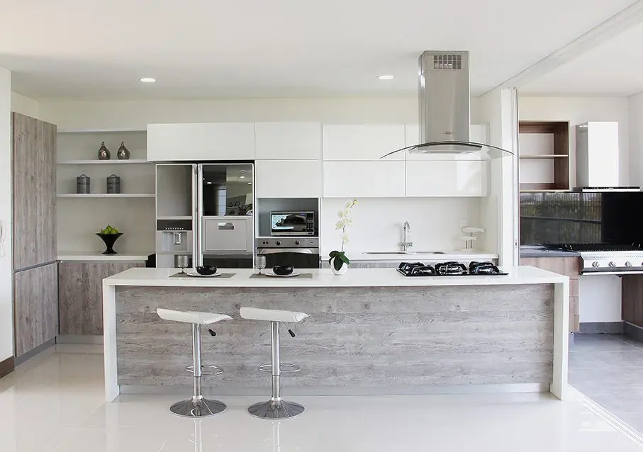“La cocina es ahora un espacio de exhibición. Vemos vitrinas para lucir elementos y darle un impacto visual. No solo tenemos gavetas”, comenta Peláez. Este aspecto se debe, en gran medida, a la evolución de los electrodomésticos: “Hoy en día son un universo con múltiples posibilidades en acabados frontales cuando se trata de mimetizar, pero también cuando buscas acero y vidrio se conciben ambientes al gusto de cada consumidor”, dice Jaime Andrés Herrera, gerente de línea de productos electrodomésticos de la compañía Robert Bosch.