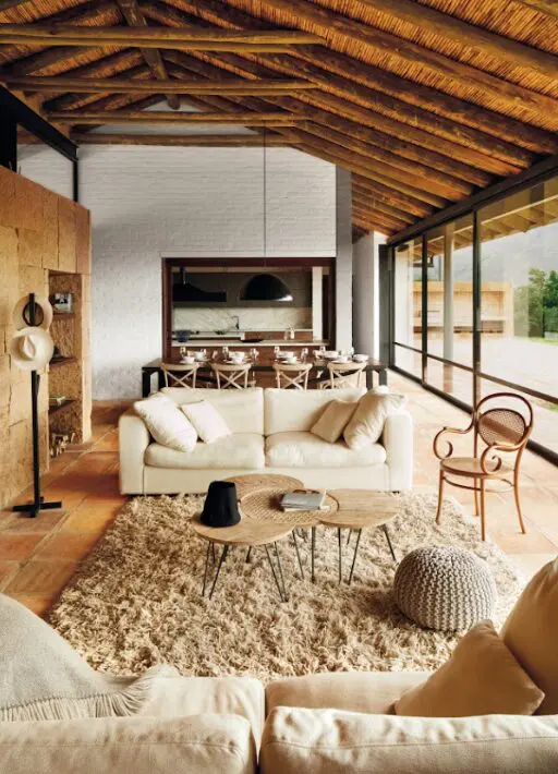 2. El material es otro aspecto que se debemos considerar y este esta relacionado directamente con el clima. Si estamos en clima frío la lana, la seda, el algodón o el polipropileno son una opción perfecta, igual que los tapetes de pelo largo. Mientras que en lugares cálidos, las fibras naturales como el fique, el yute o el polipropileno tejido son una excelente opción.