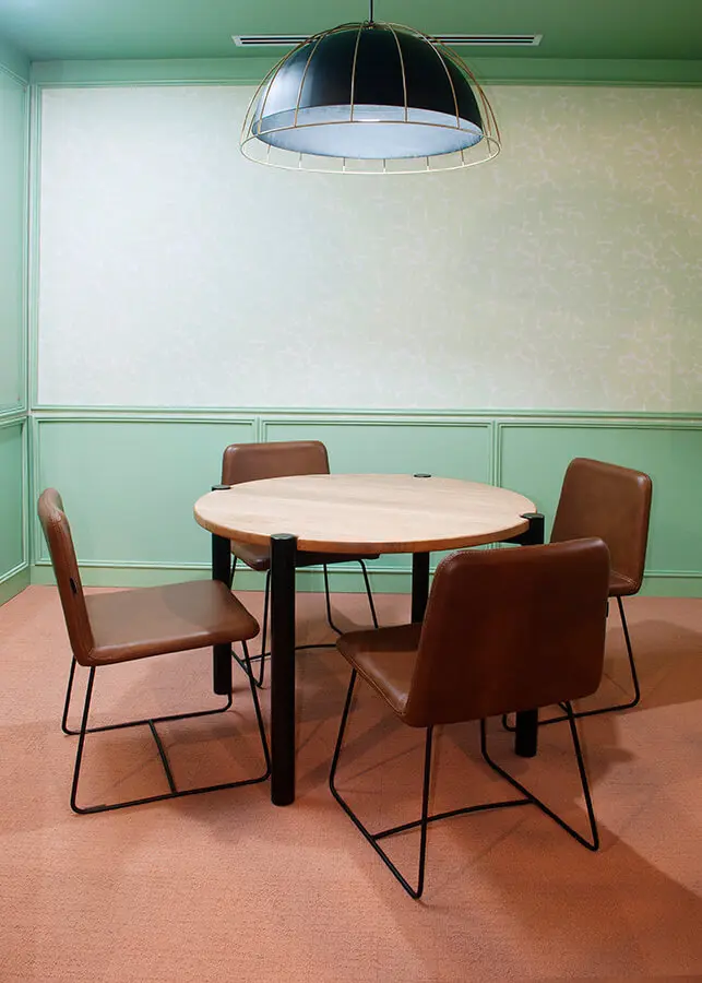 Para sus nuevas instalaciones contaron entre sus proveedores con la firma colombiana Zientte, que suministró mobiliario concebido para un proyecto de coworking. Entre las referencias están las sillas Miami, que sobresalen por su estructura simple, sutil y cómoda, con patas de hierro y cojinería de espuma de alta densidad. Diseñadas por Sergio Vergara, las utilizadas en las salas de juntas están tapizadas en cuero para brindarle un toque de distinción al ambiente.Una cómoda jornada