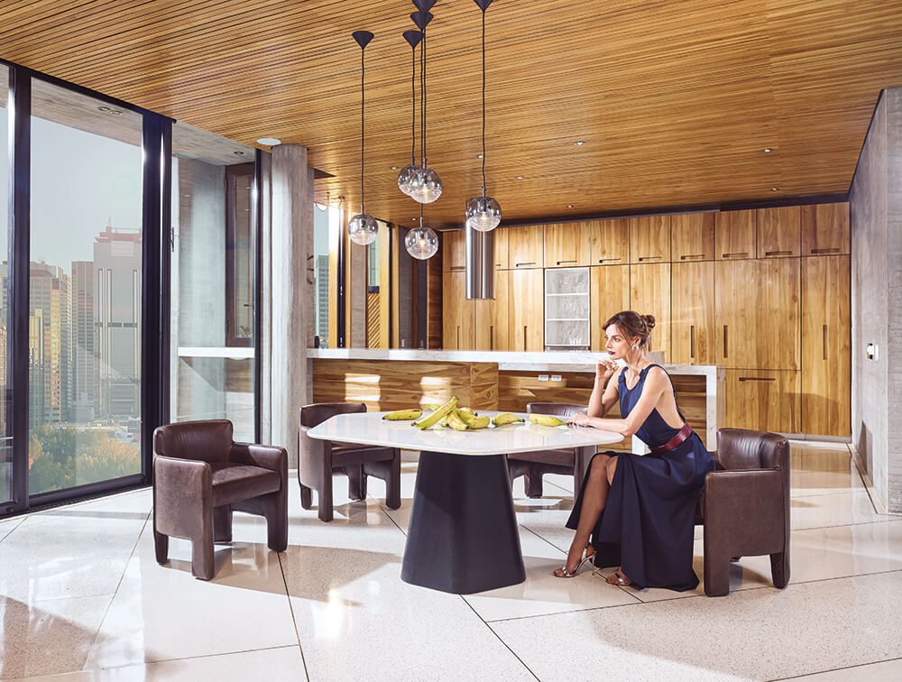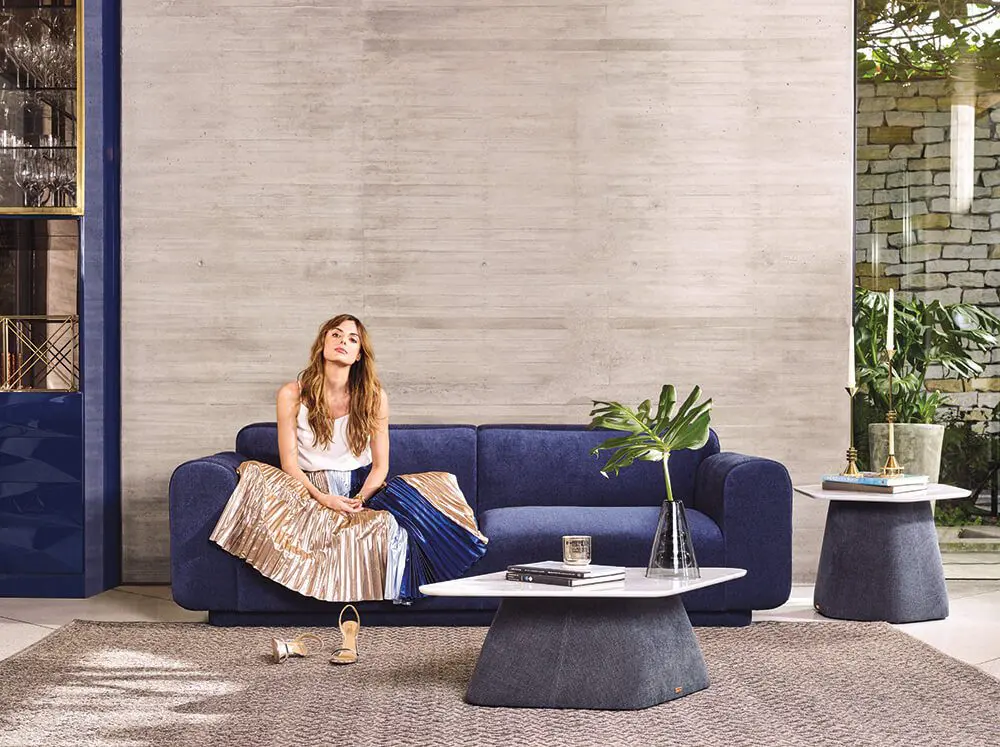 Además, la marca que se ha caracterizado por tener en sus catálogos productos tapizados, en esta colección decidió innovar y apostarle al recubrimiento total de la base de las mesas, con chenille y cuero.