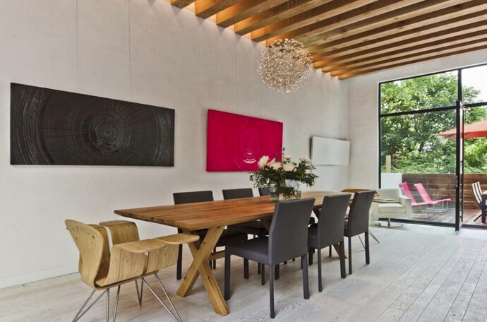 Toda la materia prima se seleccionó de los proveedores de la provincia de Quebec que tienen conciencia y responsabilidad ambiental. El espacio moderno y acogedor es el conjunto de la combinación de vigas expuestas, grandes ventanas y un patio interior.