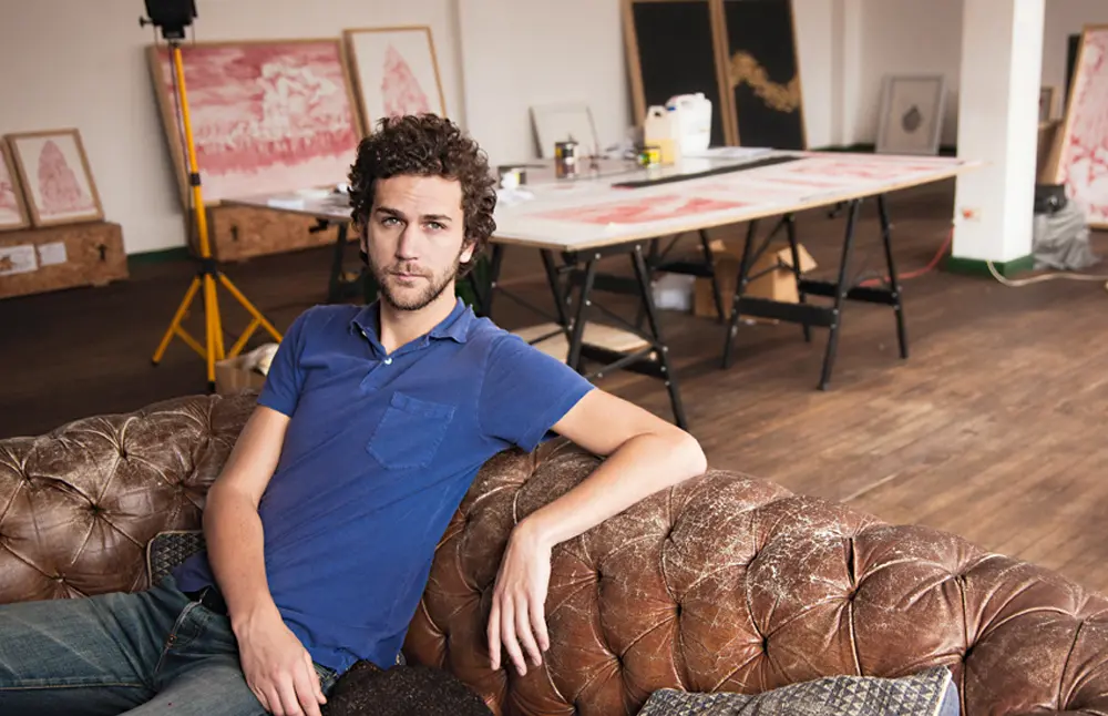 En su estudio un guacal se convirtió en una banca para invitados, un dispensador de soda en una hielera y una biblioteca en el lugar ideal para guardar pinturas y pinceles