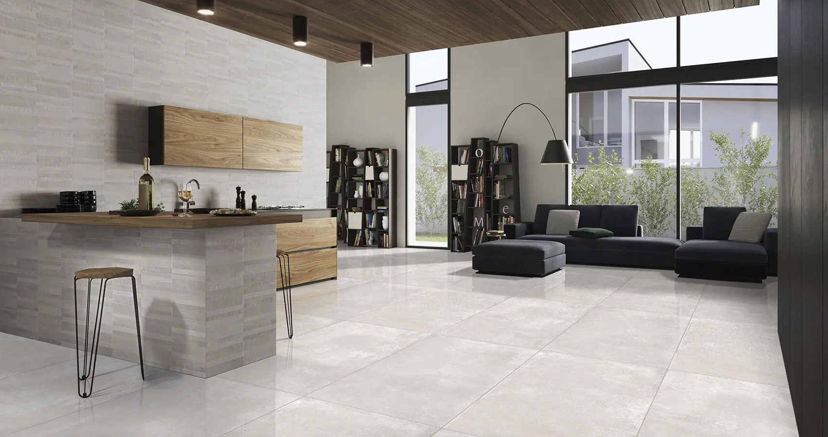 Mayor dimensión/ Cuando la cocina se abre como centro de actividad, su presentación, acorde con el diseño interior, y la facilidad de mantenimiento y limpieza resultan requisitos indispensables a la hora de escoger los materiales de acabado. Varmora, marca importada por Platinum Tiles, ofrece porcelanato con acabado esmaltado mate o texturado lapato, de fácil mantenimiento por su nivel de absorción casi nulo, y disponible en formato de 60 x 120 cm. Su tamaño disminuye las juntas en los enchapes de pisos y muros, y aporta una sensación de más amplitud y limpieza.