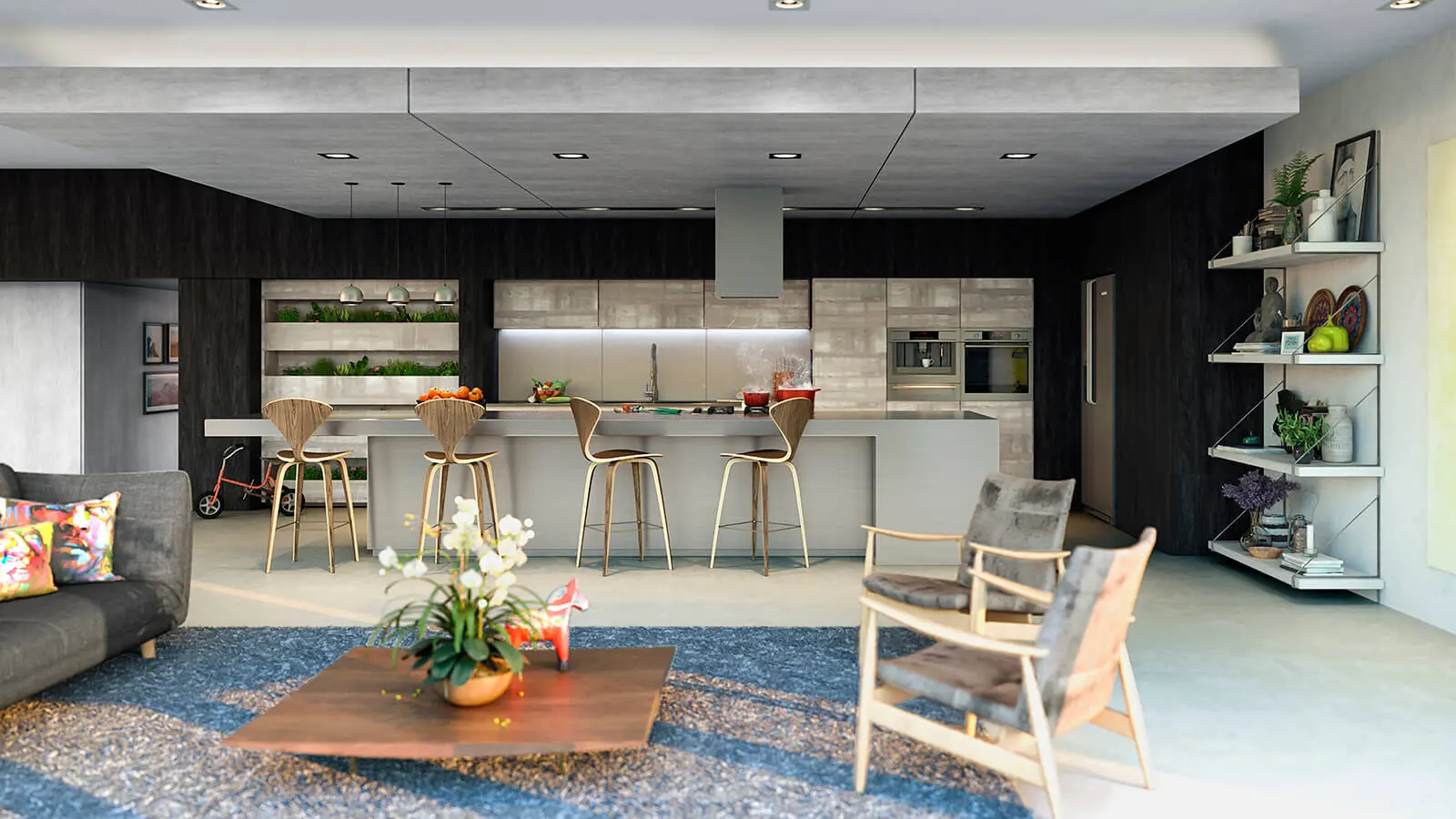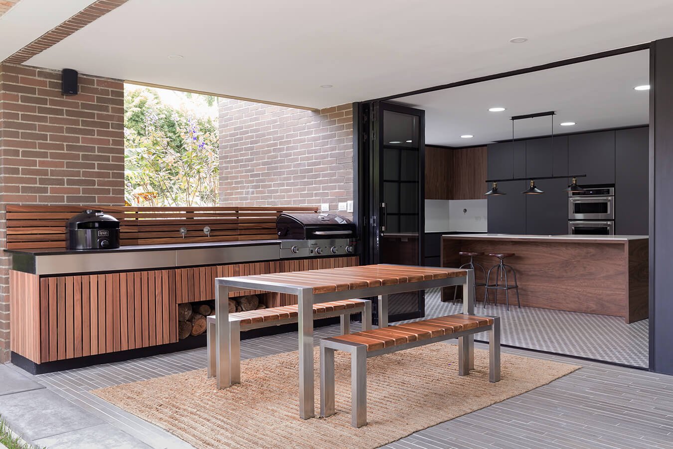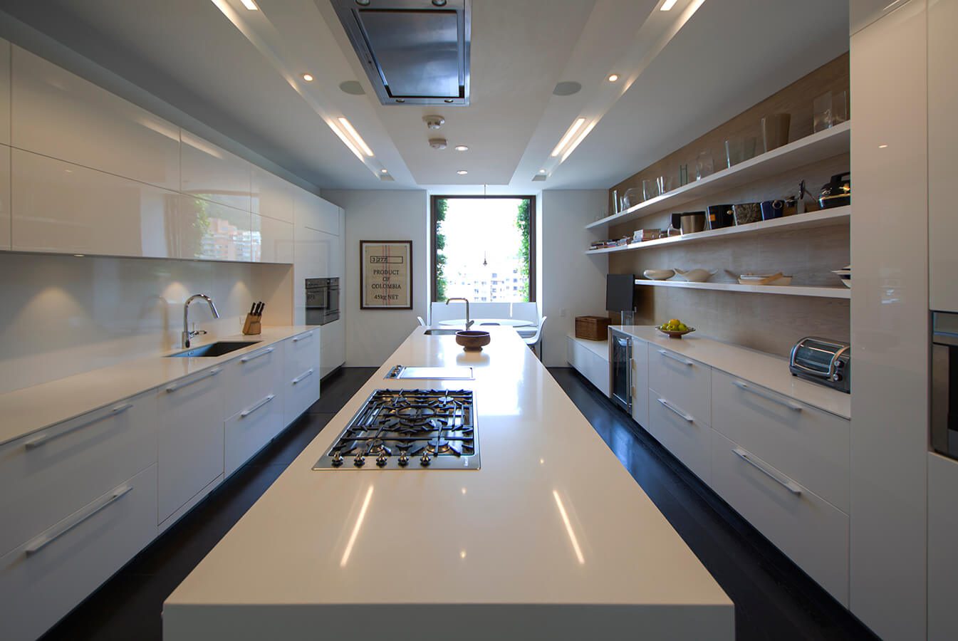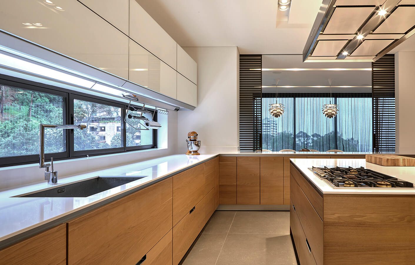 Cocina para conocedores/ Para la adecuación de su apartamento en los cerros orientales de Bogotá, una pareja apasionada por la gastronomía dispuso integrar la cocina con la zona social, dejando la posibilidad de cerrarla mediante un juego de puertas correderas Rimadesio cuando se requiera un uso más reservado de este espacio. La firma Schaller se encargó del diseño y lo ejecutó instalando muebles de Santos, una reconocida marca española con más de medio siglo de experiencia en la fabricación de mobiliario para cocina. Los equipos de alta gama de la marca alemana Gaggenau fueron escogidos por los dueños para lograr el alto nivel de precisión exigido para la correcta preparación de sus recetas preferidas.