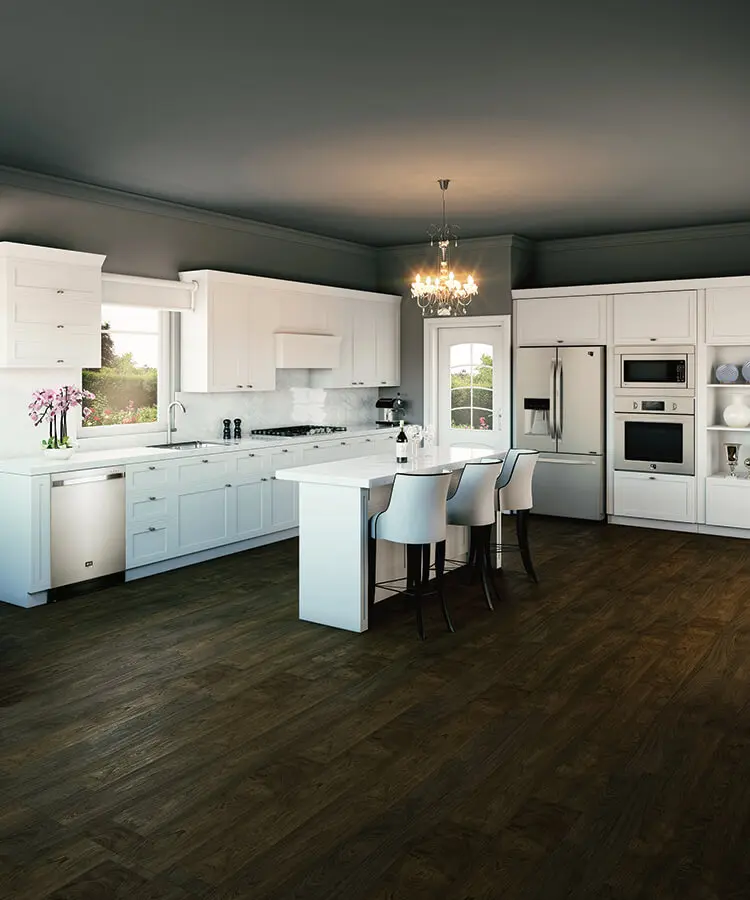 Diseño coordinado/ El estilo early american de una cocina con muebles blancos, muros grises y piso con tono de nogal armoniza con la sobriedad de la línea LG Studio, diseñada para revelar su sobresaliente tecnología en el momento del uso. Los paneles de control, botones y perillas de operación e indicadores están dispuestos para un manejo intuitivo de las funciones, las cuales se ejecutan con eficiencia y ahorro de energía. Coordinados en su aspecto, el lavavajillas, la estufa, la nevera tipo puerta francesa y la torre con microondas y horno por convección equipan este ambiente y se integran con su diseño.
