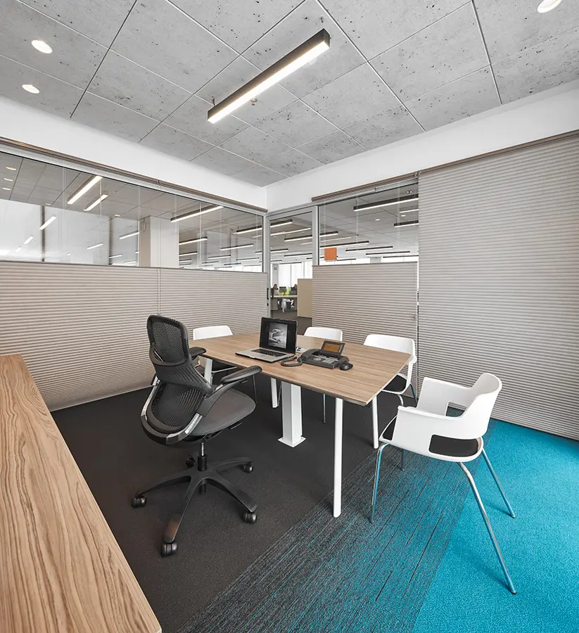 La relación entre las personas y el trabajo colaborativo determinan este proyecto de 3.097 m2, inspirado en una red urbana donde la comunicación y las relaciones entre los distintos equipos de trabajo fluyen con facilidad. De acuerdo con Andrea Jaramillo, analista de mercadeo y comunicaciones de Carvajal Espacios, en el diseño se usó mobiliario de Mepal para 400 puestos operativos, además para los distintos niveles de la organización: presidencia, gerencias y jefaturas. Espacios colaborativos, puntos de café y una cafetería sirven como ambientes de conexión para construir vínculos, estimular un trabajo coordinado y facilitar el logro de las metas propuestas.