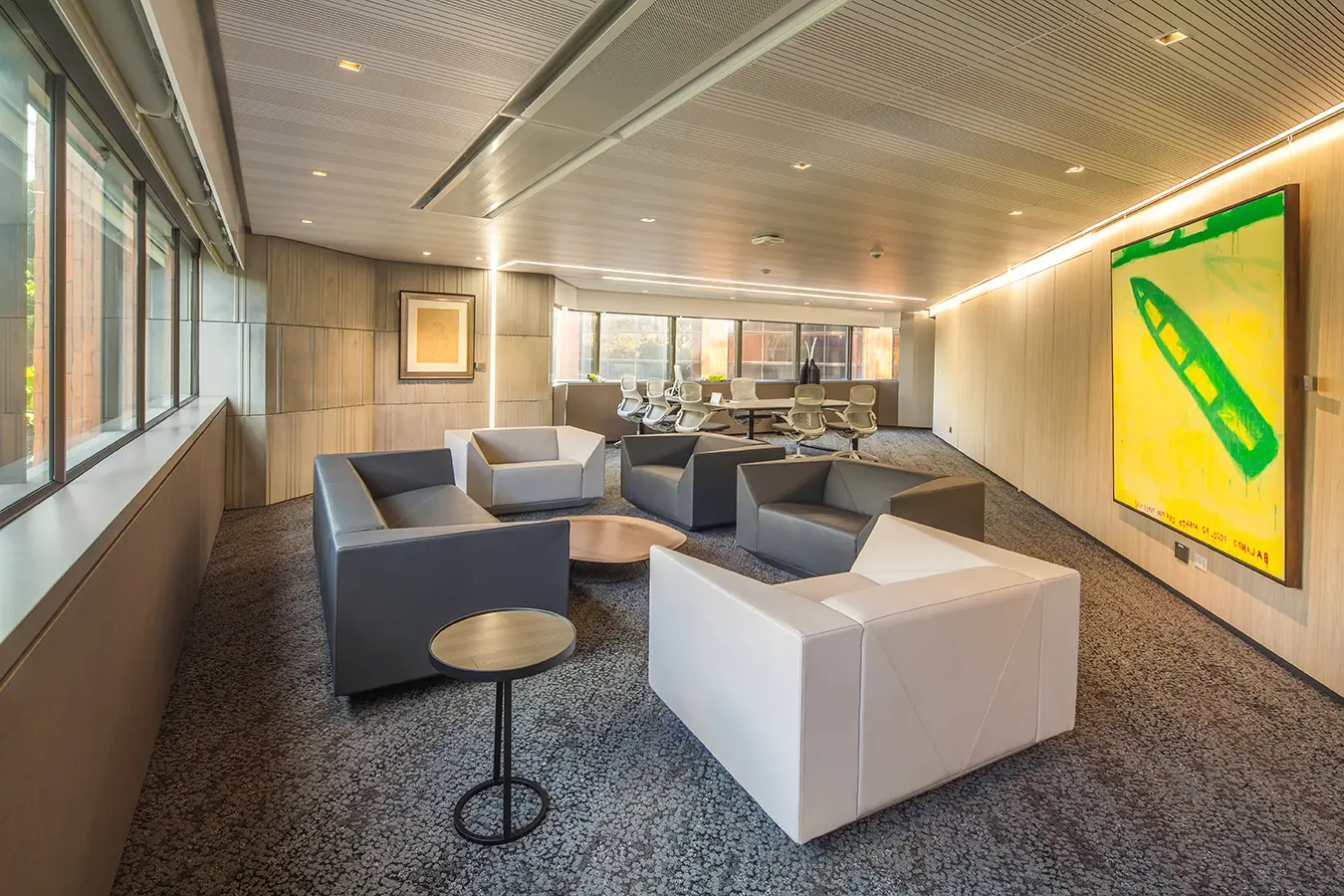 En las nuevas instalaciones de EY, que ocupan 900 metros cuadrados, predomina la claridad de tonos blancos y el grises, que adquieren calidez con el amarillo que identifica a la firma. Para el amoblamiento utilizaron piezas funcionales y ergonómicas para puestos de trabajo, salas de juntas y de capacitación, y áreas colaborativas y de descanso.