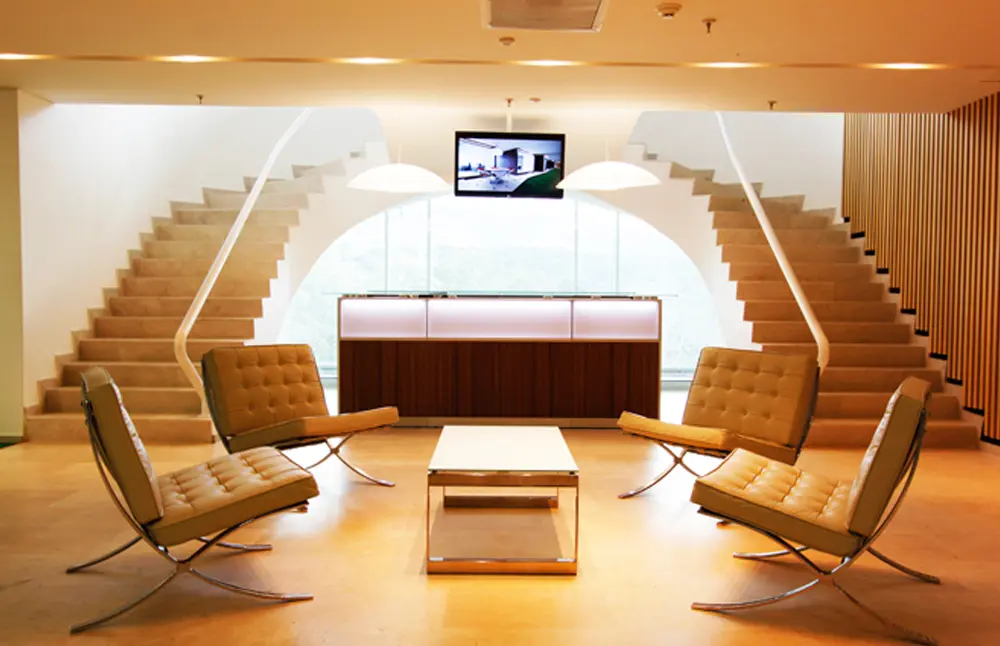 Borrar el esquema tradicional de las oficinas de cubículos y aplicar la informalidad para lograr mayor productividad durante las horas de trabajo, se convirtió en la solución de diseño que los arquitectos Esteban Duque, Diego Serna y Nicolás Higuera les dieron a las oficinas administrativas de La Fundación de la Mujer, en Bucaramanga. “Queríamos que los empleados vieran la oficina como un espacio de trabajo sin que se sintieran limitados a su escritorio; abrimos los espacios comunes e hicimos unos cubos por donde la gente puede pasar y acceder a las terrazas logrando democratizar el espacio para que no fuera tan evidente la jerarquía en las oficinas”, comenta Duque. Los puestos de trabajo de sus 250 empleados están rodeados de zonas verdes que ayudan a que el ambiente laboral sea más tranquilo y agradable; los materiales y colores neutros, así como las divisiones blancas y el cielo raso con paneles de absorción acústica también cumplen este objetivo. Las sillas Sayl de Herman Miller, de Contract, son las encargadas de darle el toque de color al lugar en el que toda la iluminación es automatizada.