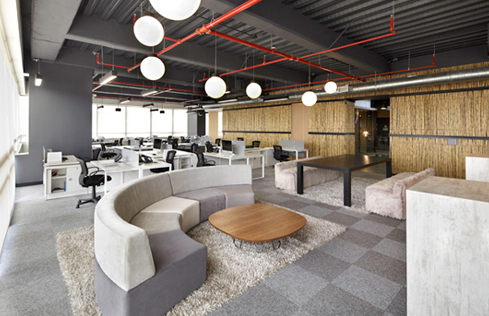 Este diseño debía reflejar la evolución de una agencia de publicidad que hoy se ubica entre las cinco más grandes del país, por lo que la idea fue mezclar la sobriedad que sugiere una marca consolidada con el estilo creativo de una empresa de este tipo. Por eso, los sobrios grises de columnas, vigas y pisos son matizados por la contundente escalera roja, el único objeto de color intenso dentro del proyecto. Otro requisito era contar con materiales nacionales, lo que dio origen al recursivo muro de caña de Villa de Leyva y al uso de ladrillo costeño para la pared del ascensor. Este juego de texturas lo completan los pisos alfombrados, los muebles de madera de pino y los sofás de cuero.