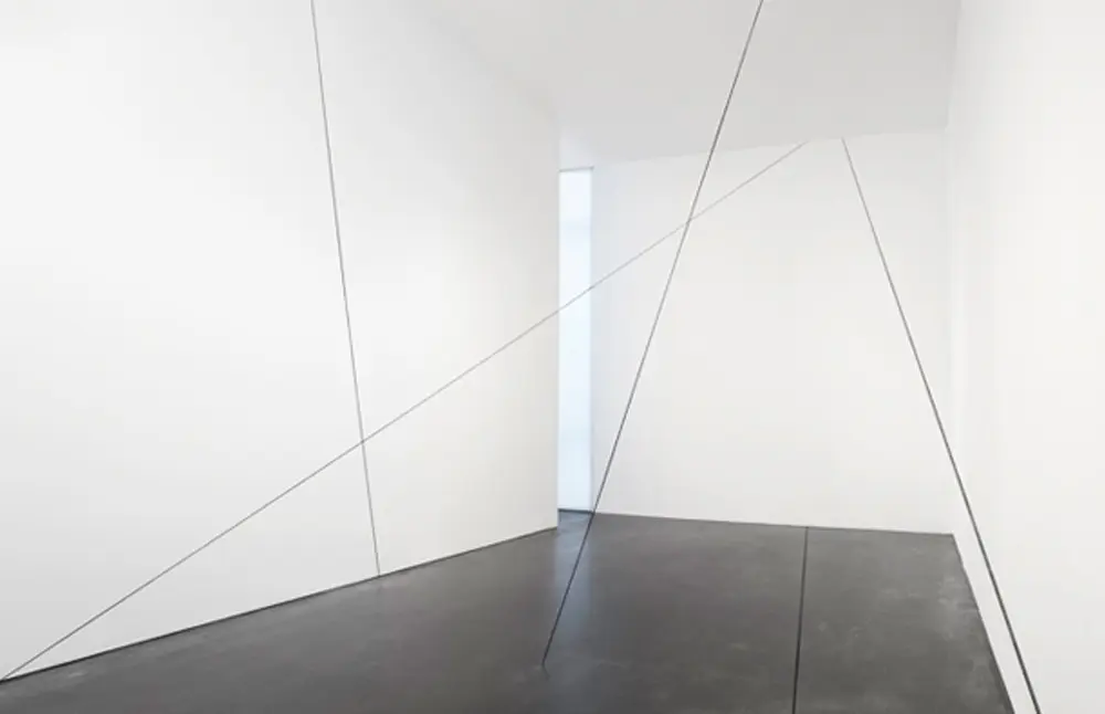 Fred Sandback, famoso por realizar esculturas minimalistas a partir de hilos y cuerdas, inició su trabajo en los 60, cercano al surgimiento del minimalismo y de artistas como Donald Judd, Robert Morris y Dan Flavin. Se caracterizó por realizar intervenciones en el espacio arquitectónico que involucraban al espectador en un juego de ilusión. Simples hilos que estaban dispuesto de lado a lado y formaban un dibujo de líneas tenues que generaban planos geométricos flotantes, los cuales eran percibidos como sólidas paredes transparentes.