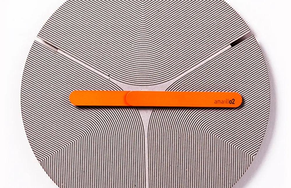 La exploración gráfica comenzó con la dinámica de la música y los sonidos espontáneos, ambos querían plasmar esas ideas en el diseño de sus obras. Todos los relojes están llenos de líneas y en cada uno hay un pentagrama diferente y el espectador lo interpreta cuando lo toca o mientras observa la hora. El tramado se obtiene del proceso de cortar y grabar las piezas de cartón con láser, que deja un bajo relieve. “La mano es una aguja de tocadiscos que siente la melodía conceptual que hay detrás aunque no hay notas musicales”, explica el diseñador caleño.