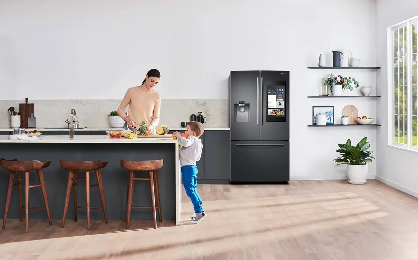 Una cocina pensada como una suma de microcosmos funcionales, es aquí en donde el diseño y la tecnología se unen para facilitarnos la vida. Un ejemplo de esto es Family Hub, de Samsung. Una de sus múltiples características es la de ver dentro de esta usando su pantalla o un smartphone. Una nevera inteligente que integra tecnología de punta con un diseño limpio que se camufla con las propuestas de diseño contemporáneo que vaticina la feria.