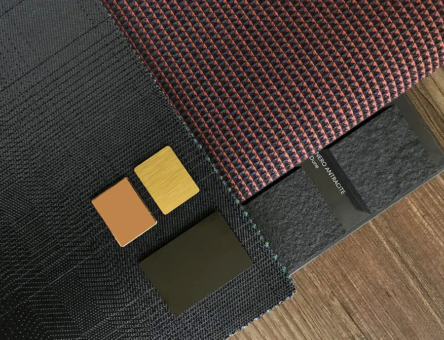 Si bien textiles como el tartán o tela escocesa son alusivos al concepto del Dandi, Cruz de la Pava propone mantener el tono frío de los azules y vino tintos referente a países como Inglaterra y Escocia, pero dejando el entramado de un lado. Tanto Felipe de la Pava como Camilo Cruz están de acuerdo en que, al utilizar un textil de origen más étnico, como por ejemplo la referencia Melaka Woodland de Sunbrella, le añadirían un toque ecléctico al concepto y de esta manera lo aterrizarían a un espacio colombiano.