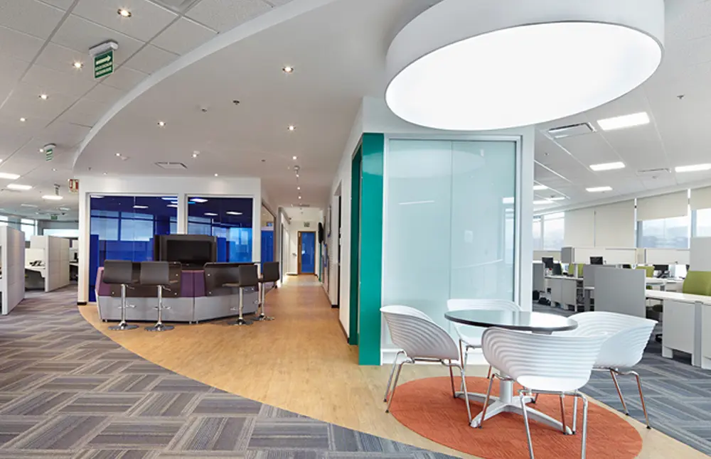 Las oficinas corporativas de General Electric ocupan dos pisos del Centro Empresarial Titán Plaza y su distribución consiste en tres salas de juntas, oficinas abiertas y cerradas, áreas pequeñas para reuniones, cocinas y zonas de circulación.