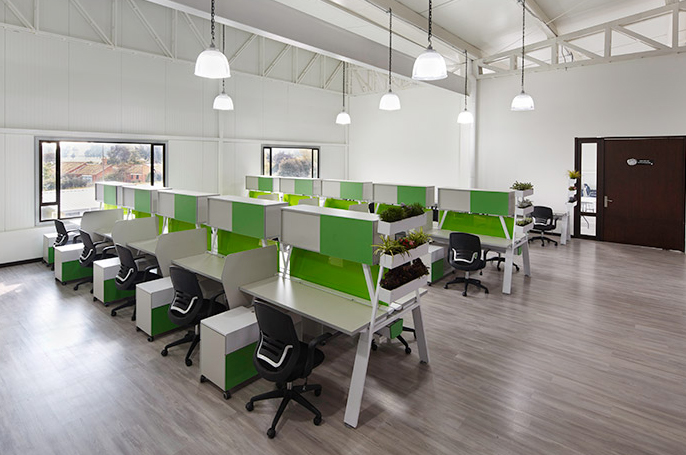 El mobiliario cuenta con unos accesorios para almacenar materas, lo cual le confiere tranquilidad y un toque natural al espacio de trabajo.