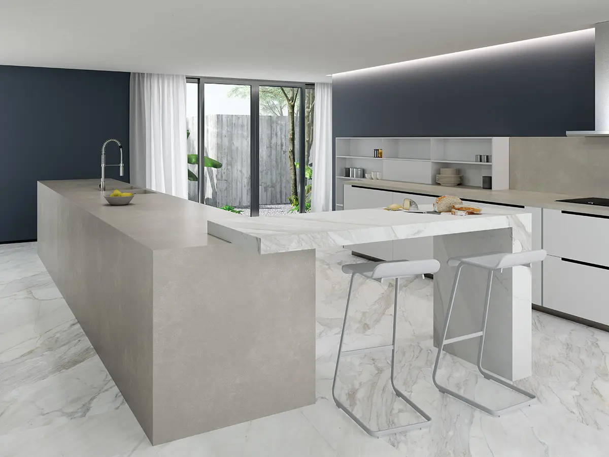 Only Pisos y Acabados lanza la nueva línea Coverlam de gres porcelánico en dimensiones excepcionales: hasta de 3,6 x 1,2 metros, que permiten enchapar alturas completas de piso a techo sin juntas en los tramos verticales, y diferentes grosores de láminas, de 3,5, 5,6 y 12 milímetros, que ofrecen la posibilidad de escoger el calibre adecuado para usar en pisos, peldaños, muros o cielorrasos. Las piezas de gran formato Coverlam son ideales para fachadas estampilladas sobre mortero o ventiladas, para lo cual ofrecen los anclajes correspondientes.