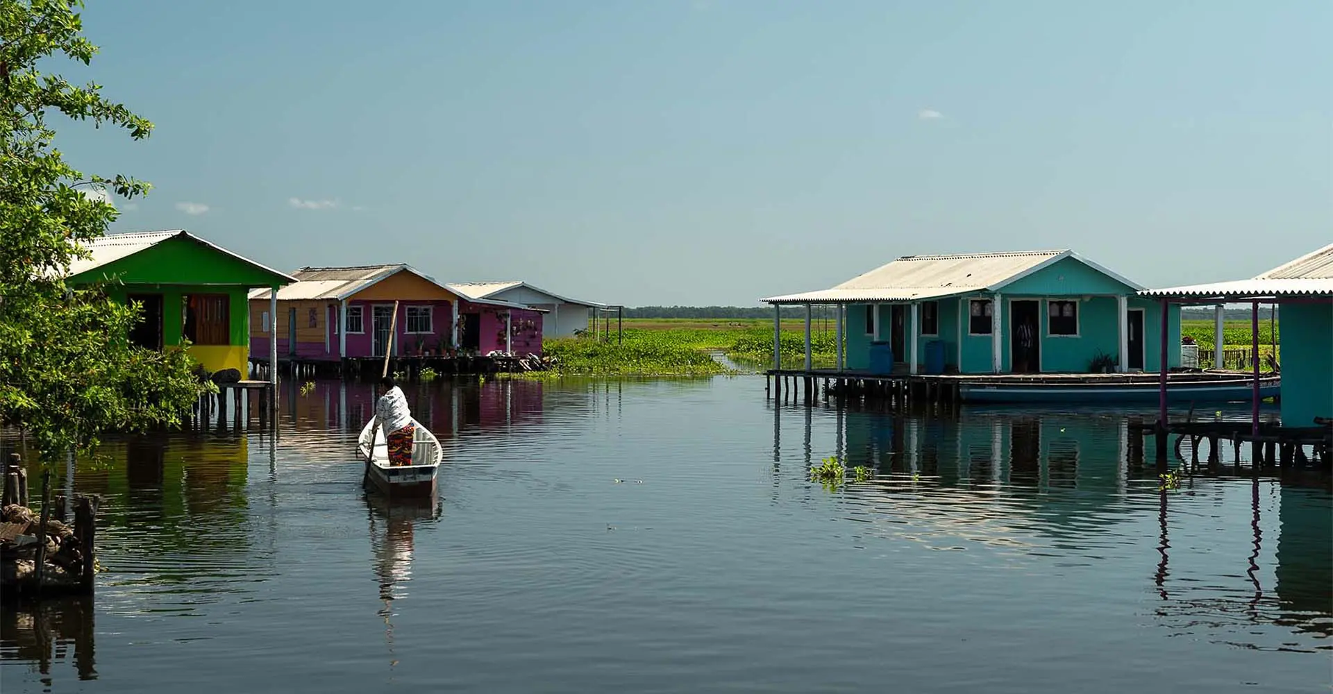 El hecho de que las viviendas estén sobre el agua, levantadas a punta de madera desde hace siglos y que resistan los embates de la naturaleza —porque si bien el agua es tranquila, las tormentas allá son fuertes— ya es un acto de magia arquitectónica. A esto se suma el encanto del color, pues hace unos años varias organizaciones, entre estas la Fundación Pintuco, las pintaron con tonos vivos que rompen el azul y el verde del paisaje.
